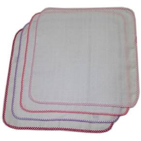 Especificações: Quantidade: 5 fraldinhas de boca Tamanho: 33x33 cm Composição: Tecido duplo 100% algodão duas camadas para maior durabilidade Acabamento: Crochê feito à máquina Marca: Dugu