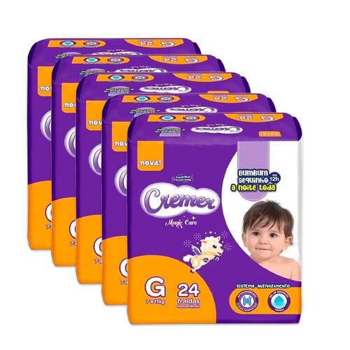 A Fralda Descartável Cremer Magic Care Jumbo garante uma super proteção contra vazamentos e pele seca por até 12 horas, noite e dia. Seu gel de absorção rápida distribui todo o xixi pela fralda e evita o retorno do líquido, garantindo que a pele do bebê fique bem sequinha e protegida. Com suas fitas flexíveis que auxiliam nas trocas abrindo e fechando quantas vezes forem necessárias. Tudo isso para um cuidado mágico e super proteção para seu bebê!