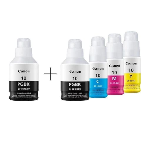 Kit Tinta Canon GI-10 2x Preto e Tricolor (Ciano, Magenta e Amarelo)
