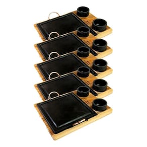 Kit 5 Grelha 10 Molheiras em Pedra Sabão e Suporte G 25x25cm