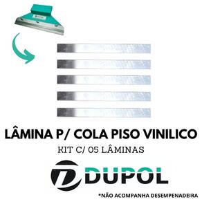 A Lâmina Dentada A4 Piso Vinílico é utilizada na Desempenadeira A4 DUPOL para espalhar cola, este modelo de lâminas é indicado pelos fabricantes de cola para atingir a espessura correta proporcionando a adesão necessária para a aplicação e proporcionar mais qualidade nas aplicações de pisos Vinílicos. Estes refis devem ser utilizados na Desempenadeira A4 Dupol, que possui sistema de troca de lâminas e é fabricado especificamente para acoplar os refis PT0.5 indicados para atingir aproximadamente 500 micras de espessura final da cola.