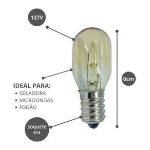 A Lâmpada E-14 15W Famastil foi desenvolvida especialmente para geladeiras e micro-ondas, oferecendo alta resistência a variações de temperatura e um encaixe seguro com base E-14. Com luz amarela suave (2700K) e fluxo luminoso de 60 lúmens, ela ilumina perfeitamente o interior dos eletrodomésticos, facilitando o dia a dia na cozinha. Esta lâmpada compacta, com 4,8 cm de altura e 2,2 cm de diâmetro, é compatível com aparelhos de qualquer marca, proporcionando até 1000 horas de vida útil para um desempenho confiável e duradouro.