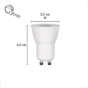 - base: gu10 - formato: mr11 - temperatura de cor: 4000k branco neutro - tensão: bivolt - potência: 4w - fator de potência: 0.40 - fluxo luminoso: 340 lm - eficiência luminosa: 85 lm/w - ângulo de abertura: 38 - vida útil : 25.000 horas - temp. De operação: -20c 40c - frequência: 50/60hz