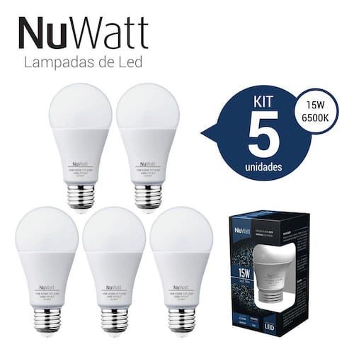 A NuWatt inova ao trazer ao mercado brasileiro a melhor tecnologia em lâmpadas de LED. As lâmpadas NuWatt proporcionam a você inúmeras vantagens, que vão desde a sua durabilidade de 25.000 horas, economia de energia e excelência na qualidade, garantida pela tecnologia Samsung LED. Além disso, as lâmpadas não emitem raios U.V e I.R. e contam com toda a segurança da certificação pelo INMETRO. De fácil instalação e sem manutenção, agora você pode contar com a melhor solução em iluminação com tecnologia Samsung aí na sua casa!_x005F_x000D__x005F_x000D_A NuWatt Tem:_x005F_x000D__x005F_x000D_• 2 ANOS DE GARANTIA (uma das maiores garantias do mercado)_x005F_x000D_• DURABILIDADE DE 25.000 HORAS_x005F_x000D_• TECNOLOGIA SAMSUNG LED INSIDE_x005F_x000D_• CERTIFICADO INMETRO_x005F_x000D__x005F_x000D_Informações técnicas_x005F_x000D__x005F_x000D_Tensão da rede: 127-220 V_x005F_x000D_Potência: 15 W_x005F_x000D_Fluxo Luminoso: 1350 lm_x005F_x000D_Eficiência Energética: 90 lm/W_x005F_x000D_Temperatura da Cor: 6.500 K_x005F_x000D_Índice de Reprodução de Cor: 80 Ra_x005F_x000D_Vida Média: 25.000 h_x005F_x000D_Frequência: 60 Hz_x005F_x000D_Corrente: 120 mA [127 V] | 71 mA [220 V]_x005F_x000D_Fator de Potência: >0,70_x005F_x000D_Base: E27_x005F_x000D_Potência Equivalente Incandescente: 90 W_x005F_x000D_Potência Equivalente Fluorescente: 26 W_x005F_x000D_Dimensões: 70 mm [D] x 134 mm [C]_x005F_x000D_Peso: 84 g Marca: NUWATT