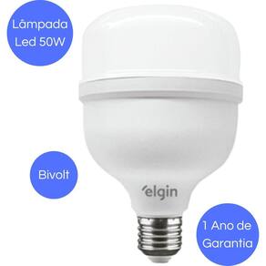 Ficha técnica: - Temperatura da luz: 6500K branco frio - Fluxo Luminoso: 4000 lumens - Consumo: 50w - Eficiência luminosa: 80lm/W - Ângulo de visão: 240 - IRC: 80 - Soquete: E27 - Voltagem: Bivolt - Dimerizável: Não - Índice de Proteção: