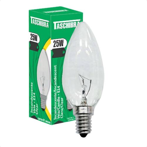 Kit 5 Lâmpadas Incandescente Taschibra Vela 25W E14 Clara 110V Características Gerais do Produto: Dimensões AxLxP CM : 9,6 X 3,5 Formato: Vela Cor da luz: 2700K Quente Produzido em: Vidro Voltagem: 110V Alimentação: Energia elétrica Cor acabamento: Transparente Clara Leitosa Branca Potência: 25W Fluxo luminoso: 210 Lumens Eficiência luminosa: 8,4 Lm/W IRC: 80 Ângulo de abertura: 360 Para uso em soquete: E14 : 90 dias junto ao fabricante Aplicação: Abajures, decorações, luminárias, pendentes e lustres Vida útil: 750 horas Acompanha o produto: 05 Lâmpadas : 90 dias Marca: Não Informado Ean: 7903422282210