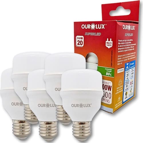 Kit 5 lampadas superled alta potencia ourolux 20w e27 6500k Lampada superled alta potencia ourolux t20w e27 6500k bivolt Descrição do produto Ilumine seu espaço com eficiência e estilo o superled alta potência ouro 20t 6500k é a escolha perfeita para quem busca uma iluminação potente e clara. Com uma temperatura de cor de 6500k, ele oferece uma luz branca fria que é ideal para ambientes de trabalho, escritórios, garagens e muito mais. Características - alta potência bivolt: proporciona uma iluminação intensa, garantindo visibilidade em grandes áreas. - longa durabilidade: vida útil prolongada, diminuindo a necessidade de trocas frequentes. - fácil instalação: design prático que se adapta a diferentes tipos de luminárias. - tamanho do produto: 10cm altura x 6cm largura x 7cm de diametro. - : 3 meses - composição: polímero termoplástico, metal e componentes eletrônicos. - certificação: inmetro - cor: branco frio - base de conexão: e27 - fluxo luminoso: 1600 lm - eficiência energética: 80 lm/w - potência: 20w Vantagens - longa vida útil: menos trocas e manutenção. - sustentável: menor impacto ambiental em comparação com lâmpadas convencionais. - design moderno: se adapta a qualquer decoração. Aplicações Perfeito para escritórios, lojas, fábricas, ou qualquer ambiente que necessite de iluminação clara e eficiente. Marca: Não Informado Ean: 7794233218853