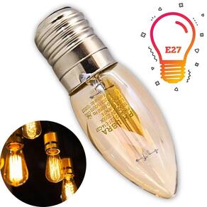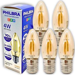 Vem na Embalagem: 5x Lâmpadas Vintage Filamento LED Vela C37 Âmbar 2200K E27