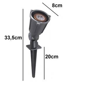 Tipo de Lâmpada: Led Gu10 - Potência máxima 10w Tipo de Soquete: GU10 Cor: Verde Comprimento total: 33,5cm Comprimento da haste: 20cm Diâmetro: 8cm Tensão: 127-220V Soquete em porcelana; Marca: Olivo Produto: 5 Espeto de Jardim Tipo de Material: Plástico - Nylon Quantidade de Lâmpadas: 1 Com sensor de movimento: Não É à prova d'água: Sim Contém lente de vedação em policarbonato na cúpula onde é inserida a lâmpada;