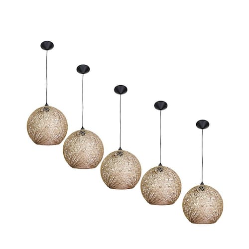 Kit 5 Luminária Rústica Teto Artesanal Fibra Natural 18 Cm