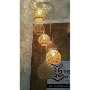 Kit com 5 luminária rústica de teto artesanal fibra natural 18 cm