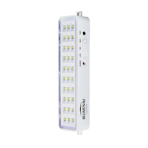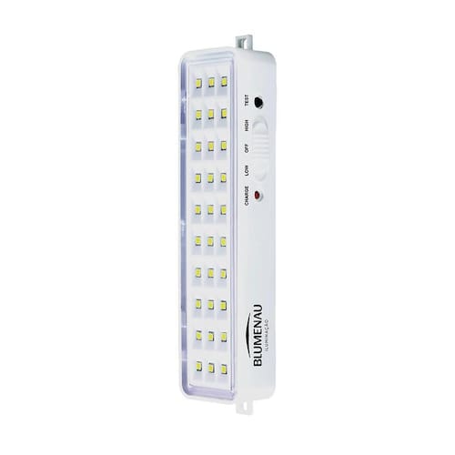 Kit 5 Luminárias de Emergência Blumenau 30 Leds Recarregável Bivolt Características Gerais do Produto: Dimensões AxLxP CM : 16 X 2,5 X 4 Formato: Retangular Cor da luz: 6500K Frio Produzido em: Plástico de Engenharia, Alumínio, Placa de Circuito Impresso e Componentes Eletrônicos Voltagem: Bivolt em 110V e 220V Alimentação: Energia elétrica Cor acabamento: Branco Potência: 1W Eficiência luminosa: 100 Lúmens IRC: 80 : 1 ano junto ao fabricante Aplicação: Parede Acompanha lâmpada: Não necessita, LED já integrado Grau de proteção: IP20 Tempo de Carga Horas : 24h Autonomia em horas: Mínimo: 6h - Máximo: 3h Acompanha o produto: 05 Luminárias Completa : 1 ano junto ao fabricante Marca: Não Informado