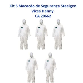 kit 5 Macacões de Proteção Química Branco Steelgen CA 20662 | Segurança e Conforto em Ambientes Exigentes O macacão de proteção química Steelgen foi desenvolvido para garantir segurança e conforto em ambientes de trabalho exigentes. Confeccionado em não tecido de fibra de polipropileno microporoso respirável, ele oferece proteção contra partículas sólidas e possui tratamento anti-estático, sendo ideal para indústrias e ambientes laboratoriais com risco de explosão.