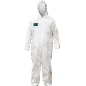 Especificações técnicas - Material: não tecido de fibra de polipropileno microporoso respirável. - Fechamento: zíper frontal para fácil uso e remoção. - Elásticos: no capuz, cintura, punhos e tornozelos para melhor ajuste e vedação. - Cor: Branco. - Norma técnica: ISO 16602:2007