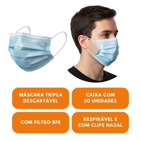 5 Caixa de Máscaras Triplas Descartáveis com elástico ou com tiras, são máscaras cirúrgicas de uso único utilizadas em salas de cirurgia e em outras áreas de instalações de saúde, onde é necessário manter em um mínimo a contaminação cruzada entre o profissional da saúde e os pacientes. É destinada para o auxílio da garantia de qualidade e proteção contra contaminação durante procedimentos estéticos, gastronômicos e industriais em geral ou outras áreas.