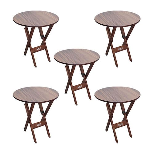 Kit 5 Mesas Dobráveis De Madeira Redonda 70cm Imbuia - Cor: Marrom