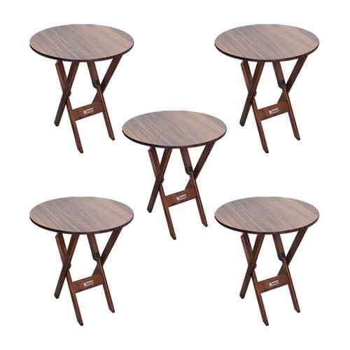 Kit 5 Mesas Dobráveis De Madeira Redonda 70cm Imbuia - Tarimatã A Mesa redonda dobrável é ideal para bares, restaurantes, estabelecimentos, áreas de lazer e também para sua casa. Em madeira maciça tornando resistente e durável. Seu design permite ser encaixado em qualquer ambiente, trazendo um toque a mais para seu estabelecimento. Além de sua durabilidade, o que lhe trará conforto para servir seus clientes. Por ser dobrável torna-se mais fácil guardar, manusear e limpar o produto.