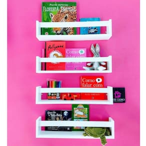 Kit 5 Nichos Porta Livros De Criança Prateleira de Bebê 40cm Nichos enviados montados para você . de acabamento perfeito Qualidade comprovada por nossos clientes Material 100% MDF 15 mm. Acabamento do mdf, superior á pintura em qualidade e durabilidade Produzido com fita de borda em PVC, incomparável ás de papel utilizadas no mercado. O que vem: - Kit com 5 prateleiras para livros, brinquedos, itens de cozinha, banheiro etc. brancas - Pode ser instalado em Várias posições de acordo com sua necessidade. - Produto versátil, perfeito para organização e decoração de todos os ambientes. - Suporta até 8 Kg cada. - Fácil instalação, bastando fixar na parede. - Kit de instalação acompanha o produto. - MEDIDAS 40 cm comprimento 12 cm altura 10 cm profundidade Marca: Não Informado