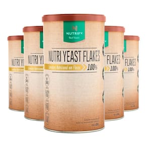 Kit 5 nutri yeast flakes nutrify 300g Benefícios: agrega valor nutritivo e sabor às receitas. Nutri yeast flakes é uma levedura inativa originada de fungos saccharomyces cerevisiae , que, ao contrário das leveduras de cerveja ou fermentos, não promove qualquer tipo de alteração nas características físicas, mas agrega valor nutritivo e sabor às receitas. Trata-se de um alimento que fornece naturalmente proteínas e vitaminas do complexo b, fundamentais para a saúde geral do organismo, além de fibras insolúveis, que auxiliam na digestão, e -glucanos, com ação de fortalecimento imunológico. Nutri yeast flakes não tem ingredientes de origem animal, glúten ou lactose. Com textura crocante, é uma forma prática e inovadora de incluir mais saúde e aroma em todas as suas refeições. Nutrify valoriza a origem de cada ingrediente, respeita a integridade de suas fontes naturais e dos envolvidos em sua produção. É assim que criamos produtos saudáveis e saborosos, que fazem bem para as pessoas e para o planeta. Acreditamos que nutrir corpo e mente de modo saudável nos torna capazes de alimentar o mundo com atitudes positivas. Ingredientes: levedura inativa seca saccharomyces cerevisiae . Não contém glúten. Sugestão de consumo: consumir 17,5 g 4 colheres de sopa ao dia, ou conforme orientação . Perfeito para enriquecer saladas, sopas, legumes, massas e outras receitas. Pode substituir o queijo ralado em preparações. Apresentação: embalagem disponível: lata contendo suplemento em flocos. Peso líquido: 300 g produto classificado como: suplemento alimentar proteico em flocos. Marca: Não Informado