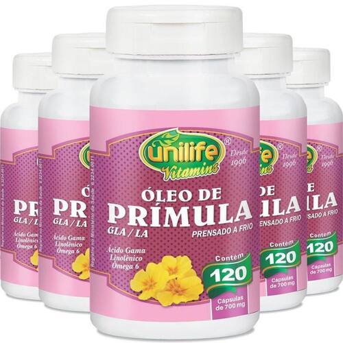 O que contem no kit Óleo de prímula da Unilife Contem 5 unidades de um dos melhores suplementos naturais do mercado, totalmente benéfico com diversas propriedades interessantes em sua qualidade de vida e saúde. O que é o óleo de prímula da Unilife O Óleo de prímula é extraído da prímula-da-noite uma planta encontrada no norte dos Estados Unidos, tem como principal atrativo a regulação dos hormônios, podendo até acabar com os sintomas da TPM, também auxilia no , é utilizado há milhares de anos, portanto vem sendo pelo mundo fitness pois pode auxiliar no controle do apetite. Como devo utilizar o Óleo de Prímula da Unilife A fabricante Unilife recomenda-se o consumo de 2 cápsulas, 3 vezes ao dia, totalizando uma dose máxima diária de 6 cápsulas, para alteração dessa quantidade, somente com acompanhamento médico especializado na área de nutrição. Marca: Não Informado