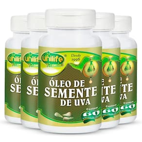 KIT 5 ÓLEO DE SEMENTE DE UVA 1200MG UNILIFE 60 CÁPSULAS