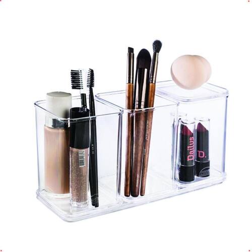 O organizador é ideal para organizar gavetas de escritório, para guardar miudezas em geral como acessórios de cabelo, itens de maquiagem e de higiene, entre outros. Com paredes retas e empilhamento perfeito. Contém 3 organizadores, 1 bandeja e 1 tampa.