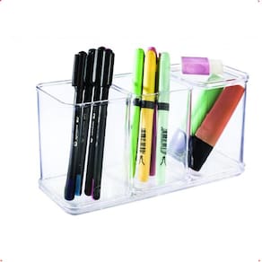 O organizador é ideal para organizar gavetas de escritório, para guardar miudezas em geral como acessórios de cabelo, itens de maquiagem e de higiene, entre outros. Com paredes retas e empilhamento perfeito. Contém 3 organizadores, 1 bandeja e 1 tampa.