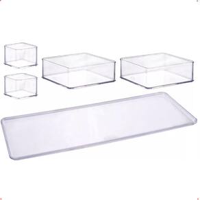 Kit 5 organizadores multiuso transparente com encaixe 36,5cm Kit 3 org encaixa 36,5 x 14,6 x 6,0 cm -5 pcs multiuso