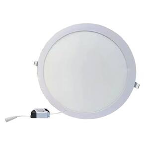 Informações técnicas Potência: 25W Modelo: Redondo embutir Material: Alumínio e acrílico Temperatura de cor: Branco Frio (6000K-6500K) Luminosidade: 1800 - 2250lm Vida útil estimada (L70) em 25.000h Voltagem: AC110-220V (Bivolt) Frequência: 50/60 Hz Ângulo de abertura: 120° Temperatura de operação: -20ºC a 50ºC Economia de energia em até 80% Proteção: IP20 Dimensões: Painel total: 30cm Painel área de corte: 27cm Diâmetro: Ø30cm Profundidade: 1,1cm