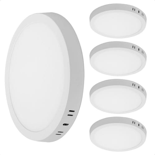 Kit 5 Painel de Led Redondo Sobrepor 12W Bivolt Taschibra 4000K Neutro