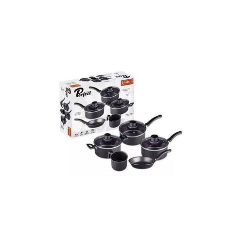 Conjunto panelas 5 peças antiaderente perfect eirilar - black/grafite Conjunto de panelas com revestimento antiaderente é para quem gosta de praticidade , os alimentos não grudam na panela proporcionando facilidade também na limpeza . Proporciona um cozimento rápido e uniforme e pode ser utilizada no fogão à gás ou elétrico . As panelas têm um revestimento interno antiaderente resistente à abrasão , que serve como uma aderência em qualquer superfície e propaga o calor com maior eficiência . Possui tampa de vidro temperado de alta resistência com saída de vapor e alças anatômicas facilitando o manuseio . Composição: 1 panela especial antiaderente com tampa de vidro 16 cm. 1 panela especial antiaderente com tampa de vidro 18 cm. 1 caçarola especial antiaderente com tampa de vidro 18 cm. 1 canecão especial 12 cm. 1 frigideira especial 18 cm. Sem tampa .