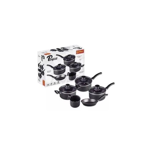 Conjunto panelas 5 peças antiaderente perfect eirilar - black/grafite Conjunto de panelas com revestimento antiaderente é para quem gosta de praticidade , os alimentos não grudam na panela proporcionando facilidade também na limpeza . Proporciona um cozimento rápido e uniforme e pode ser utilizada no fogão à gás ou elétrico . As panelas têm um revestimento interno antiaderente resistente à abrasão , que serve como uma aderência em qualquer superfície e propaga o calor com maior eficiência . Possui tampa de vidro temperado de alta resistência com saída de vapor e alças anatômicas facilitando o manuseio . Composição: 1 panela especial antiaderente com tampa de vidro 16 cm. 1 panela especial antiaderente com tampa de vidro 18 cm. 1 caçarola especial antiaderente com tampa de vidro 18 cm. 1 canecão especial 12 cm. 1 frigideira especial 18 cm. Sem tampa .