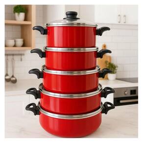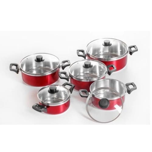 Kit 5 Panelas Com Tampa De Vidro Alumínio Grosso - Vermelho - Kit de panelas de alumínio com tampas de vidro