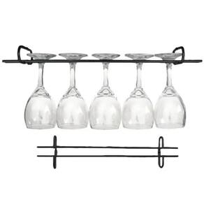 Kit 5 Peças Porta Taças de Teto Preto Fosco Suporte Suspenso para Taças Reto 42cm #Taças organizadas #Suportes de taças #Detalhes Garantia: 3 meses / Peso: 890g / Cor: preto fosco / Ref: 83073X5 Dimensões de cada: 42cm (C) x 9,5cm (L) x 4cm (A); Distância entre os parafusos: 35,5cm (C); Distância das hastes: 2cm (L); Abertura para base da taça: 8cm (L); Conteúdo: 5 suportes; Não acompanha parafusos e buchas. Cuidados: Não lavar com materiais abrasivos. Material: - Aço SAE 1006/1008; - Pintura eletrostática. Um kit de 5 peças do porta taças suspenso irá organizar seus armários de forma fácil e segura. Compatível com modelos de taças para vinho, gin, champanhe, entre outros os suportes para taças de teto possuem abertura para taças que tenham base de até 8cm. Cada suporte é instalado na parte superior do móvel de forma fixa por dois parafusos deixando o ambiente elegante. Decore e otimize o espaço da sua adega ou armário pendurando sua taças com esse conjunto de porta taças.