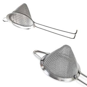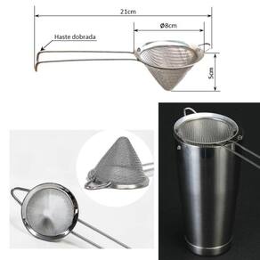 Kit com 5 Peneiras cônica inox Haste dobrada. Peneiras são utensílios necessários não Somente para o uso doméstico, mas também por Bartender ou Barman, seja na sua Casa, ou de forma profissional. Tanto em uso Doméstico, Pubs, Bares e por profissionais do ramo de coquetéis, a peneira Cônica é ideal para a separação perfeita de resíduos de frutas e gelo durante a Coagem do drink, evitando que pedaços passem para o copo. Também muito eficaz para realizar a dupla Coagem em drinks e coquetéis. Possui o diâmetro Preferido pelos bartenders e mixologistas por encaixar perfeitamente em cima Das Coqueteleiras de Boston. É um item Indispensável para qualquer kit de bar, ou até mesmo para uso doméstico devido A sua funcionalidade e elegância.
