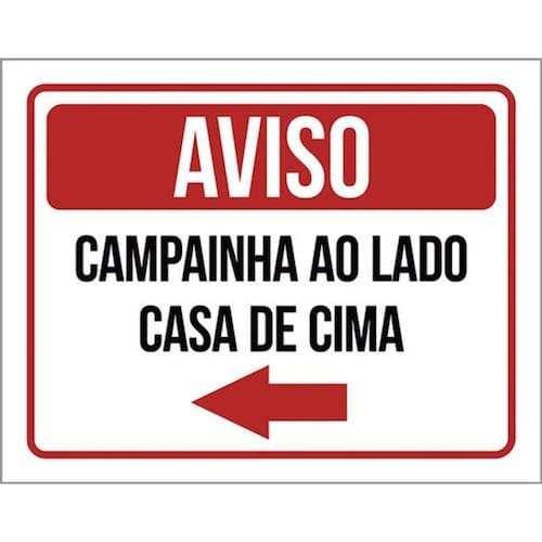 Kit 5 Placa Campainha Lado Casa Cima Seta Esquerda36x46