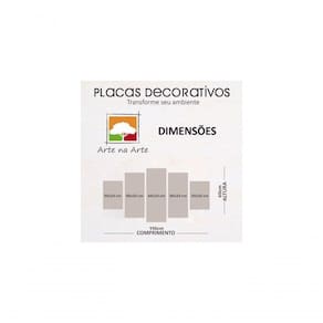 Kit Placas Quadros Decorativos 5 pçs 3D Borda infinita Leão de Judá MEDIDAS - 1 placa de 60x22 cm. - 2 placas de 50x22 cm - 2 placas de 30x22 cm MATERIAL - MDF 3mm de espessura. SEM MOLDURA TIPO DE IMPRESSÃO - Impressão em alta resolução livre de imperfeições. FINALIZAÇÂO - Finalizado em MDF 3mm adesivo vinílico fosco e fita dupla face. OBSERVAÇÕES - Material liso, sem relevos; - Moldura sem vidro (Por que não vai com vidro? Como nossas imagens são impressas em material vinil brilho altamente durável, dispensa o uso do vidro. Fique tranquilo, sua imagem não corre o risco de desbotar); - Fabricação própria; - O produto pode ocorrer de ter uma leve diferença de tom na cor da que está na tela do seu computador ou celular. - Impressão nas bordas para gerar o efeito "infinito" e 3D LIMPEZA APÓS FIXAÇÃO - A limpeza pode ser realizada apenas com um pano seco macio, se desejar pode ser úmido, porém sem conter álcool ou produtos químicos. As Placas decorativas são muito utilizadas por arquitetos e amantes da decoração. Placas do mesmo tom, que possuam correlação e que "ornem" entre si podem ser utilizados juntos para dar uma personalização maior a um determinado ambiente. Composições podem ser utilizadas em salas, cozinhas, varandas, quartos ou qualquer ambiente que você queira deixar com a sua cara. O modelo de bordas infinitas da um destaque especial a peça, dando a impressão de ser criado em 3D, podendo ser observado de todos os ângulos, a disposição dos itens em 5 peças de tamanho diferentes ajudam a criar esse ambiente diferenciado que chama a atenção. Sendo assim a Arte na Arte criou pra você uma enorme variedade em Placas Decorativos de cores e desenhos que seguem as últimas tendências de decoração. Transforme seu ambiente, decore sua sala, quarto, cozinha, escritório ou presenteie alguém especial com as Placas Decorativas Arte na Arte. Esperamos que se sinta à vontade e encontre aqui o SEU estilo, e ao olhar pra o seu ambiente, seja ele qual for - possa dizer: "Agora meu ambiente está completo!" Tire todas suas dúvidas conosco, estamos sempre à disposição. Design Exclusivo Arte na Arte undefined