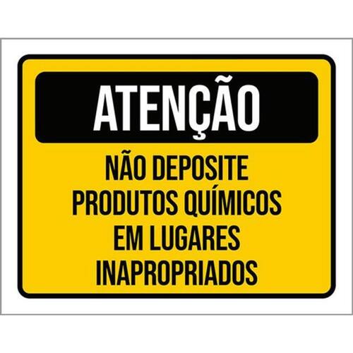 Kit 5 Placas Atenção Não Deposite Produtos Químicos Placas de sinalizaço fabricadas com poliestireno de alto impacto PSAI de 2mm e impressão ultravioleta.