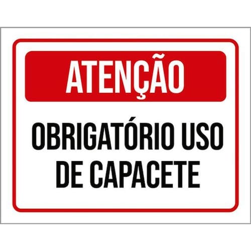 Kit 5 Placas Atenção Obrigatório Capacete 36x46 Placas de sinalizaço fabricadas com poliestireno de alto impacto PSAI de 2mm e impressão ultravioleta.