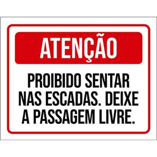 Kit 5 Placas Atenção Proibido Sentar Escadas Passagem Livre Placas de sinalizaço fabricadas com poliestireno de alto impacto PSAI de 2mm e impressão ultravioleta.