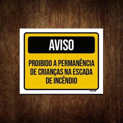 Kit 5 Placas Aviso Proibido Permanência Crianças Escada