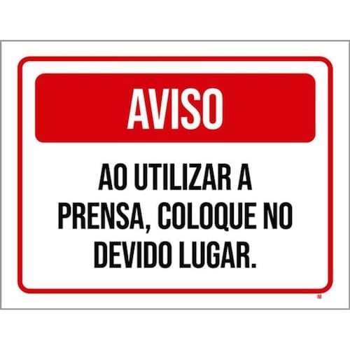 Kit 5 Placas Aviso Utilizar Prensa Devido Lugar 36x46