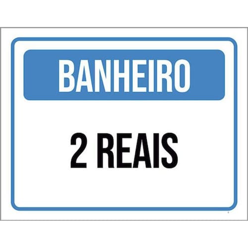 Kit 5 Placas Banheiro 2 Reais 36x46 Placas de sinalizaço fabricadas com poliestireno de alto impacto PSAI de 2mm e impressão ultravioleta.