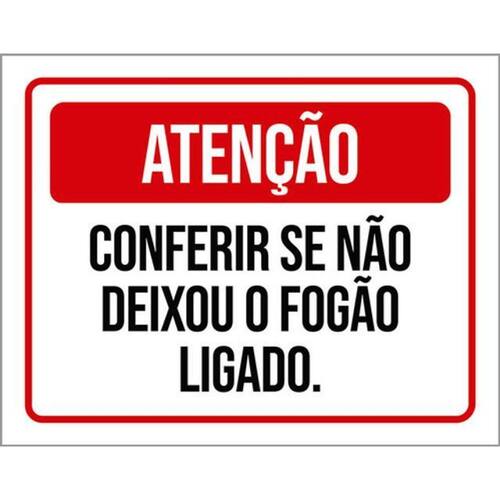 Kit 5 Placas Conferir Deixou Fogão Ligado 36x46 Placas de sinalizaço fabricadas com poliestireno de alto impacto PSAI de 2mm e impressão ultravioleta.