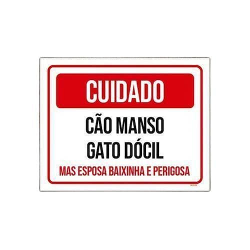Kit 5 Placas Cuidado Cão Manso Gato Dócial Esposa Perigosa - Informações do Produto: Placas decorativas fabricadas com poliestireno de alto impacto PSAI de 2mm e adesivo vinil automotivo de alta performance. - Medidas: 18cm x 23cm 5 Unidades - Fixação: Todas as placas possuem adesivo dupla face para aplicação em qualquer tipo de superfície lisa. Garantia de 12 meses e disponibilidade imediata. Marca: Sinalizo