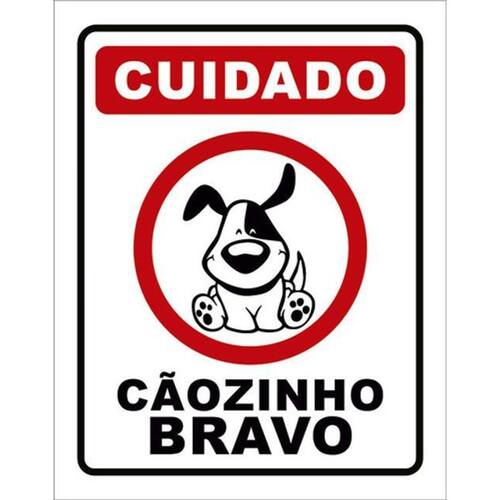 Kit 5 Placas Cuidado Cãozinho Bravo Desenho 36x46 Placas de sinalizaço fabricadas com poliestireno de alto impacto PSAI de 2mm e impressão ultravioleta.