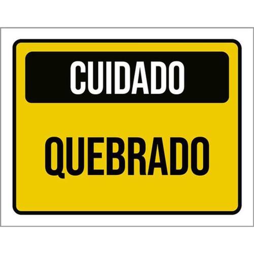 Kit 5 Placas Cuidado Quebrado Amarelo 36x46 Placas de sinalizaço fabricadas com poliestireno de alto impacto PSAI de 2mm e impressão ultravioleta.