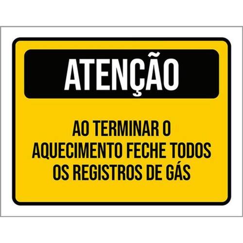 Kit 5 Placas De Atenção Feche Registros De Gás 36x46 Placas de sinalizaço fabricadas com poliestireno de alto impacto PSAI de 2mm e impressão ultravioleta.