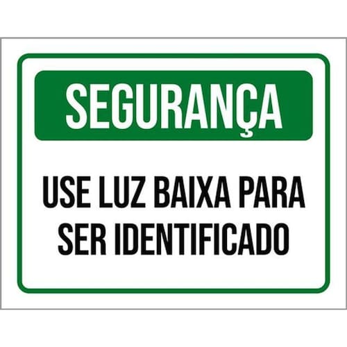 Kit 5 Placas De Segurança Use Luz Baixa 36x46 Placas de sinalizaço fabricadas com poliestireno de alto impacto PSAI de 2mm e impressão ultravioleta.