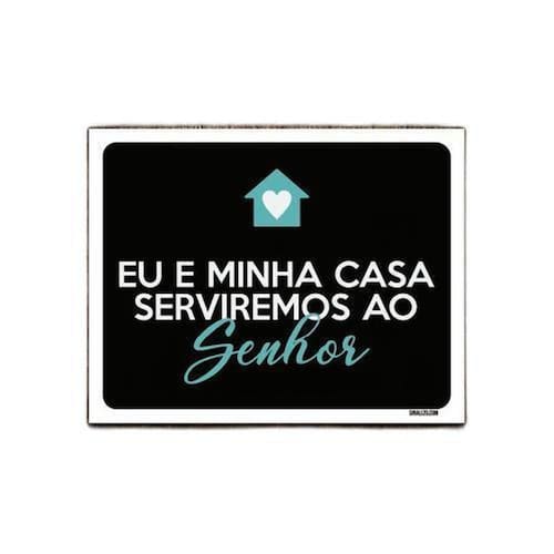 Kit 5 Placas Decorativa - Eu Minha Casa Serviremos Senhor - Informações do Produto: Kit com 5 placas decorativas iguais fabricadas com poliestireno de alto impacto PSAI de 2mm e adesivo vinil automotivo de alta performance. - Medidas: 18cm x 23cm - Fixação: Todas as placas possuem adesivo dupla face para aplicação em qualquer tipo de superfície lisa. Garantia de 12 meses e disponibilidade imediata. Marca: Sinalico